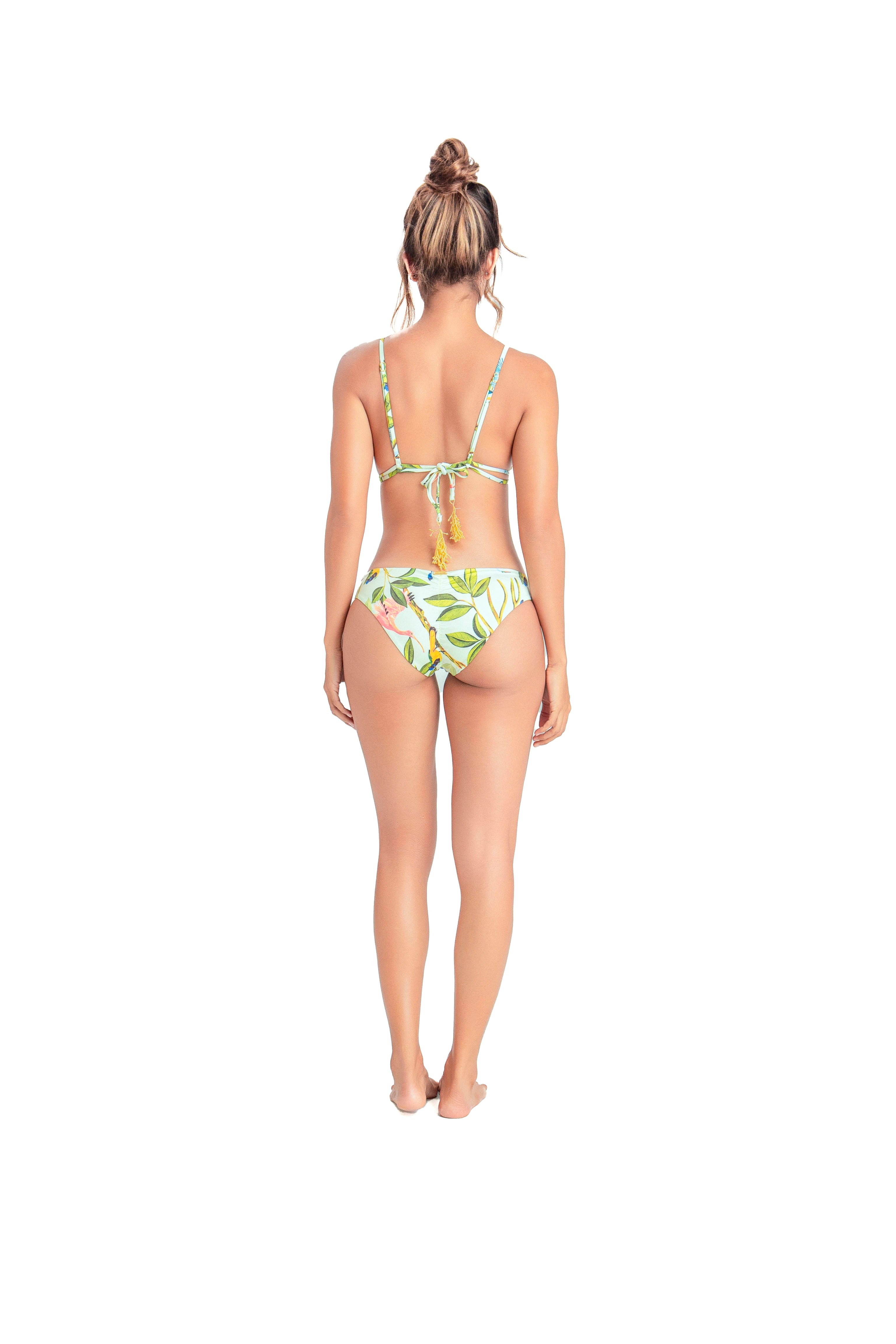 $70.00 USD$70.00 USD/Triángulo con pads removibles , doble tira de amarre en contorno . Composición: 80% poliester , 20% elástano Bottom con drapeado en los laterales.Compisición 80% poliéster...